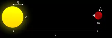 - , avec la distance avec le centre de l'attracteur, la force de gravité et l'accélération de la pesanteur.