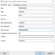 Pour définir un batch de backup quotidien, utiliser pg_dump.exe[3] en DOS. Par exemple, la commande suivante envoie un dump au format "aaaa-mm-jj-NomDeLaBase.sql" sur un serveur du réseau :
