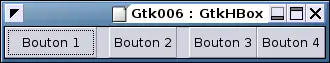 Nous allons simplement insérer quatre boutons dans une GtkHBox.
