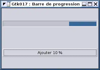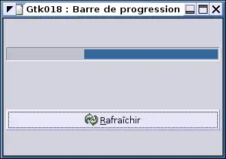 Voilà ce que donne l'exécution du programme gtk018, après clic sur le bouton et quelques dixièmes de secondes (la barre se remplit toute seule de droite à gauche) :