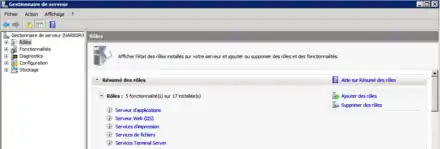 Sur Windows Server uniquement, lors de la première utilisation il faut ajouter le rôle Serveur Web dans le Gestionnaire de serveur, accessible dans le menu démarrer, Tous les programmes, Outils d'administration[2]. Puis pour ce rôle il faut cocher plusieurs services de rôle :