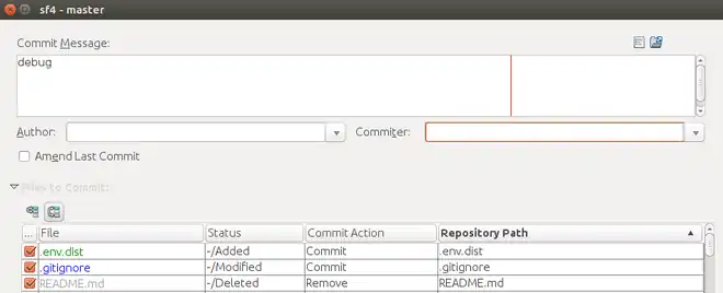 Pour éviter de commiter fichier par fichier, ajouter le bouton Commit All - Repository en le faisant glisser depuis View, Toolbars, Customize.
