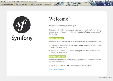 Autrement il est aussi possible d'installer un deuxième serveur web (autre que celui intégré à Symfony) sur sa machine pour se rendre compte du résultat final. Par exemple... Apache qui est très répandu chez les hébergeurs profesionnels. Il faudra alors ajouter un vhost et un nom de domaine dédiés au site Symfony[2][3]. Pour le test, le domaine peut juste figurer dans /etc/hosts.