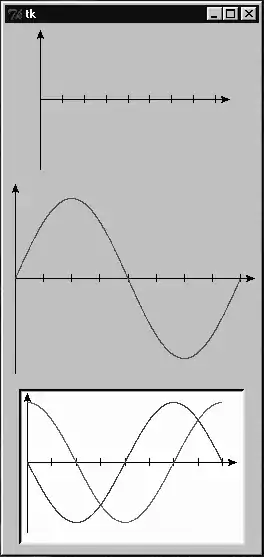 command. Pour chacun d'eux, la méthode invoquée dans cette option command est différente : la case à cocher active la méthodesetCurve(), le premier curseur active la méthodesetFrequency(), le second curseur active la méthodesetPhase(), et le troisième curseur active la méthodesetAmplitude(). Remarquez bien au passage que l'optioncommanddes widgetsScaletransmet un argument à la méthode associée (la position actuelle du curseur), alors que la même optioncommandne transmet rien dans le cas du widgetCheckbutton. Ces 4 méthodes (qui sont donc les gestionnaires des événements produits par la case à cocher et les trois curseurs) provoquent elles-mêmes chacune l'émission d'un nouvel événement[3], en faisant appel à la méthodeevent_generate(). Lorsque cette méthode est invoquée, Python envoie au système d'exploitation exactement le même message-événement que celui qui se produirait si l'utilisateur enfonçait simultanément les touches <Ctrl>, <Maj> et <Z> de son clavier. Nous produisons ainsi un message-événement bien particulier, qui peut être détecté et traité par un gestionnaire d'événement associé à un autre widget (voir page suivante). De cette manière, nous mettons en place un véritable système de communication entre widgets : chaque fois que l'utilisateur exerce une action sur notre panneau de contrôle, celui-ci génère un événement spécifique, qui signale cette action à l'attention des autres widgets présents.nous aurions pu choisir une autre combinaison de touches (ou même carrément un autre type d'événement). Notre choix s'est porté sur celle-ci parce qu'il y a vraiment très peu de chances que l'utilisateur s'en serve alors qu'il examine notre programme. Nous pourrons cependant produire nous-mêmes un tel événement au clavier à titre de test, lorsque le moment sera venu de vérifier le gestionnaire de cet événement, que nous mettrons en place par ailleurs. - Lignes 42 à 54 : Comme nous l'avions déjà fait pour