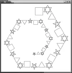 etoile6()capable de dessiner une étoile à 6 branches, elle-même constituée de deux triangles équilatéraux imbriqués. Cette nouvelle fonction devra faire appel à la fonctiontriangle()définie précédemment.