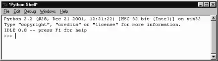 - ↑ Sous Windows, vous aurez surtout le choix entre l'environnement IDLE développé par Guido Van Rossum, auquel nous donnons nous-même la préférence, et PythonWin, une interface de développement développée par Mark Hammond. D'autres environnements de travail plus sophistiqués existent aussi, tels l'excellent Boa Constructor par exemple (qui fonctionne de façon très similaire à Delphi), mais nous estimons qu'ils ne conviennent guère aux débutants. Pour tout renseignement complémentaire, veuillez consulter le site Web de Python. Sous Linux, nous préférons personnellement travailler dans l'environnement graphique WindowMaker (plutôt que KDE ou Gnome trop gourmands en ressources), en ouvrant une simple fenêtre de terminal pour lancer l'interpréteur Python ou l'exécution des scripts, et en faisant appel à un logiciel tel que Nedit ou SciTE pour l'édition de ces derniers.