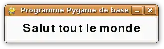 Pour la révision (ça ne peut pas faire de mal), et pour s'assurer que vous êtes familier avec la structure d'un programme Pygame standard, je vais brièvement parcourir un programme Pygame simple, qui n'affichera rien de plus qu'une fenêtre avec un peu de texte à l'intérieur, et qui devrait finalement ressembler à ça (naturellement, la décoration de la fenêtre pourra être différente sur votre système) :