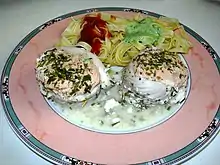 Faites cuire à la poêle, avec 1 verre de vin blanc, 10 min d'un côté, et 10 min de l'autre côté, à feu moyen, face ouverte de la roulade vers le haut à chaque fois. On peut ajouter du fromage blanc en fin de cuisson. Plat idéal pour [A.D.O.C.]