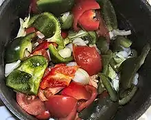 Dans une casserole, faire cuire pendant 30 min, les tomates coupées, le calamar et ajouter le piment.