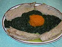 Jetez les épinards dans une eau bouillante, légèrement salée, avec une pincée de bicarbonate ; laisser à feu vif pendant 4 min ; égouttez les épinards.