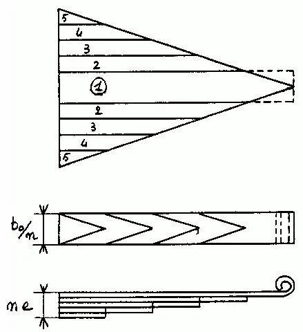 - en (d), on a de nouveau appliqué des efforts de flexion, lesquels donnent naissance à des contraintes réparties selon un diagramme dont la forme est très différente de celui décrit sur la figure (a). La contrainte résiduelle se déduit, en surface, de la contrainte qui serait normalement exercée en l'absence de préconformation, le ressort devient non seulement plus résistant en cas de surcharge, mais aussi moins sensible au phénomène de fatigue.