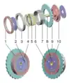 On voit ci-dessous un ressort-diaphragme en coupelle à lames multiples utilisé en particulier dans certains embrayages, une rondelle Ringspann et un diaphragme conique Borrelly :