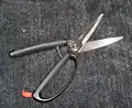 Un ressort en feuillard dit « ressort comtois », analogue à ceux qui équipent beaucoup de sécateurs, assure l'ouverture de cette pince à couper les ongles. L'outil est relativement cher, il doit résister à différentes agressions, à la chaleur, aux détergents, aux désinfectants, etc. et les divers éléments sont tous chromés. |