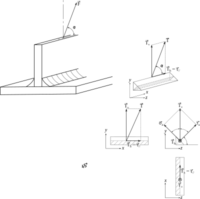 Sinon, il faut répartir les efforts en fonction de l'orientation des soudures, en appliquant les règles (simplifications) suivantes[7] :