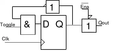 Indication : transformez votre schéma en équation de récurrence. Ce qui se trouve avant Qout dans le schéma original est une commande trois états sans inversion. Quand vous essayez d'implanter votre équation partez de la sortie physique de votre PAL.