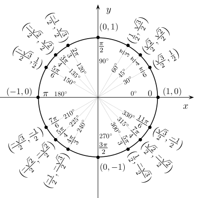 - angles : 0, π/6, π/4, π/3, π/2 et