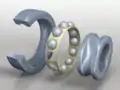 Ce sont les billes qui sont en céramique, mais parfois aussi les bagues. Le nitrure de silicium est la céramique des roulements par excellence : faible densité, grande dureté, résistance à l'usure, à la fatigue et aux températures élevées, grande stabilité chimique. Le phénomène de grippage est très retardé par rapport à l'acier et il est possible de fonctionner avec une lubrification médiocre ou temporairement nulle pour les roulements tout céramique. Cette solution est chère mais quelquefois irremplaçable !
