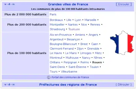 Elles sont optionnelles ; si un article contient une ou plusieurs palettes, elles sont situées en fin d’article, avant les catégories. Elles permettent de naviguer entre les différents articles traitant d’un thème proche. Triées et hiérarchisées, elles complètent les catégories. Ces palettes sont parfois déroulantes : leur contenu est caché par défaut afin de ne pas surcharger l’article. Un simple clic sur le lien dérouler, à leur droite, permet de les afficher en intégralité.