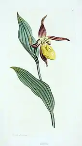 Sabot de Vénus, planche tirée du premier volume de l'English Botany de Sowerby.
