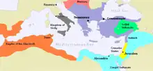 Il est difficile de savoir si Henri VI a réellement eu l'intention de conquérir l'Empire byzantin. La croisade qu'il planifie a certainement pour but la Terre sainte et non Constantinople mais peut-être conserve-t-il l'ambition, à plus long terme, de prendre Byzance. Dans les faits, l'échec de Guillaume II de Sicile à prendre Constantinople en 1185, de même que l'influence papale, hostile à une guerre ouverte avec les Byzantins, ont probablement joué un rôle dissuasif[100]. En parallèle, la rivalité byzantino-germanique s'exprime aussi en Asie mineure. En 1197, Alexis Ange tente de réaffirmer l'influence impériale chez les Arméniens de Cilicie, constitués en un royaume indépendant, en leur envoyant une couronne royale. Néanmoins, le souverain arménien, Léon II, la refuse au profit de la reconnaissance d'Henri VI, attestant de la perte d'influence byzantine dans la région[101].
