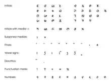 - cependant, les signes pour les consonnes finales et les clusters sont inconnus des autres systèmes d’écriture ;