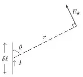 Soit un repère dont l'origine est placée au centre de l'antenne, et dont l'ordonnée se confond avec l'antenne, le champ créé par cette antenne élémentaire en un point de coordonnées polaires , telle que est :