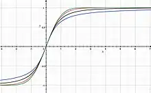 La forme en S de cette fonction fait qu'elle fait partie des fonctions dites sigmoïdes. Par rapport à la fonction logistique de Verhulst et la fonction erf, elle est celle qui est la plus lisse, c'est-à-dire celle qui est la plus longue à rejoindre ses asymptotes.
