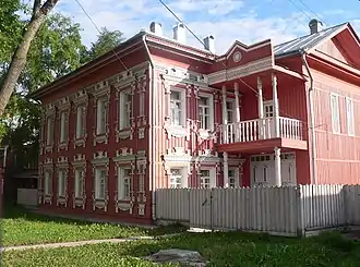 | « Vers la fin du XIXe siècle à Vologda comme dans de nombreuses villes de province les particularités locales de l'architecture ont été effacées pour les maisons en pierre. Par contre, pour les maisons en bois de Vologda, construites à la limite du XIXe siècle et du XXe siècle on a conservé clairement leurs traits particuliers[11]. » |