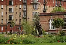 Dès la fin de la décennie, elle se révèle cependant trop petite pour accueillir la population scolaire grandissante de la cité-jardin. On bâtit donc l’école Aristide-Briand sur un terrain de 11 367 m2, approuvée par décret du 5 juin 1930 et réalisée par les architectes Maistrasse et Quoniam. L'État finance à hauteur de 81 %. Finalement, l’école Aristide-Briand est entièrement dévolue aux garçons et Vaillant-Jaurès aux filles[9]. De nos jours, il s'agit d'écoles mixtes. - Sur la place Jean-Jaurès est installée en avril 1929 une statue de l'homme politique socialiste Jean Jaurès, œuvre du sculpteur Paul Ducuing[10],[11] et du fondeur Gustave Leblanc-Barbedienne[9],[12]. D'abord placée au centre du rond-point, elle a été réinstallée le long du groupe scolaire[13].