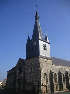 - L'église Saint-Memmie date de la fin du XIIe siècle[28]. Elle conjugue des éléments de style protogothique (chœur) et gothique flamboyant (clocher et proche). Les fonts baptismaux sont datés du XIIe ou XIVe siècle. L'autel est plus récent, remontant au XIXe siècle[29]. Elle abrite, au niveau de son tympan ajouré, des fragments de vitrail du XVIe siècle représentant le Christ[30].