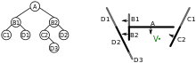 | vii. | Nous traitons les segments situés devant B1. Il n'y a qu'un seul segment, D1, nous créons donc un nœud enfant de B1 pour l'y mettre. | ![]() |