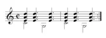 Les basses sont jouées sur tonale et quinte, avec plusieurs progressions possibles, voici un exemple :