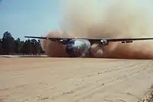 Un C-160D allemand du Lufttransportgeschwader 63 (LTG 63) faisant un posé d'assaut durant la compétition multinationale d'avions de transport tactique Volant Rodeo ´85 à la base de Pope en Caroline du Nord (États-Unis) le 3 juin 1985. Cette formation, la dernière à utiliser le Transall en Allemagne est dissoute le 31 décembre 2021.