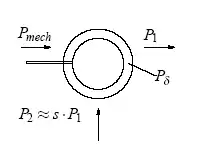 En négligeant les pertes, la puissance du rotor, , est proportionnelle au glissement multiplié par la puissance au stator .