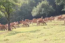 Des phénomènes d'hybridation, d'introgression génétique[37] et de « pollution génétique » existent aussi : les études génétiques et moléculaires montrent que là où - comme en Écosse[37], dans le Nord-ouest de l'Angleterre[38] ou en Irlande - des cerfs exotiques (Cerf sika) ont été introduits du Japon, dès 1860 à partir d'individus provenant de la sous-espèce de Kyushu[39] et mis en contact avec les populations autochtones de Cerf élaphe, des croisements ont eu lieu (hybrides signalés dès 1920 en Angleterre[38]), et des translocations ultérieures d'individus ou de petites populations ont encore pu compliquer la génétique des populations[40].