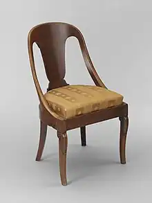 La chaise gondole est une des rares nouveautés du style Directoire dont la caractéristique principale réside en la forme arrondie et enveloppante du dossier, surtout à la hauteur des épaules, dont les montants latéraux et cintrés viennent rejoindre la ceinture du siège.