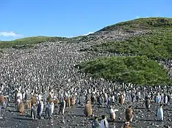 Une grande colonie de 60 000 couples de Manchots royaux (Aptenodytes patagonicus) dans la plaine Salisbury en Géorgie du Sud.