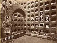Dans la Rome antique, les columbaria étaient de grandes chambres où les restes incinérés étaient placés dans des petites niches creusées dans les murs. Ces niches étaient décorées par des plaques commémoratives ou des sculptures à l'effigie du mort.