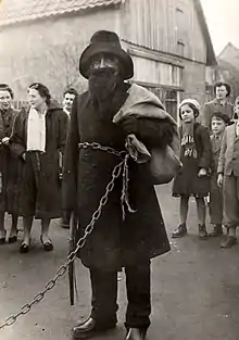 Knecht Ruprecht, en Allemagne, aussi appelé ; Pelzebock ; Pelznickel ; Belzeniggl ; Belsnickel (en) dans le Palatinat (et aussi en Pennsylvanie, sous l'influence des colons, ou dans la ville brésilienne de Guabiruba[2]) ; Rumpelklas ; Hans Muff ; Drapp, Pelzbock en Rhénanie ; Houseker au Luxembourg et Ryszard Pospiech en Pologne[3],[4],[5],[6] correspond à un homme à la barbe brune, aux cheveux longs, à l'aspect sauvage, muni d'un long manteau, venu pour punir les enfants. Le Hans Trapp en Alsace[7] ou Schmutzli en Suisse alémanique (Schmutz signifiant « terre, saleté ») ressemble beaucoup au Knecht Ruprecht avec des attributs très codifiés. Dans ces régions bilingues, il est aussi appelé père Fouettard.