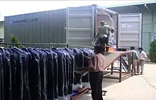 Ils peuvent être adaptés pour différents produits comme les conteneurs pour vêtements sur cintres (garmentainer, mot-valise anglais issu de la contraction de garment – « vêtement » – et container)[24],[25].
