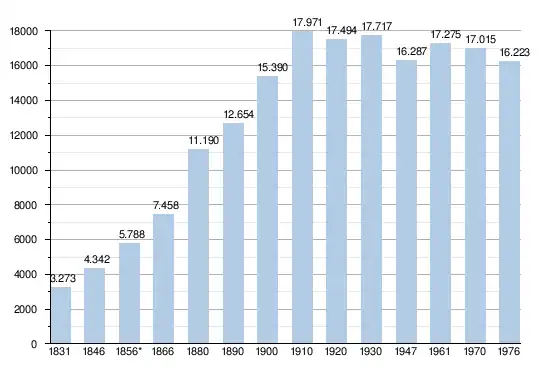 - Source: DGS , de 1831 à 1981=recensements population; à partir de 1990 = nombre d'habitants chaque 1er janvier