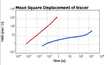 La relation linéaire entre le déplacement quadratique moyen et le temps t permet aux méthodes graphiques de déterminer la constante de diffusion D. Ceci est particulièrement utile pour les calculs approximatifs de la diffusivité dans les systèmes environnementaux. Dans certains modèles de dispersion atmosphérique, la relation entre le déplacement quadratique moyen et le temps t n'est pas linéaire ; au lieu de cela, une série de lois de puissance représentant empiriquement la variation de la racine carrée de celui-ci en fonction de la distance sous le vent est couramment utilisée pour étudier le phénomène de dispersion[6].