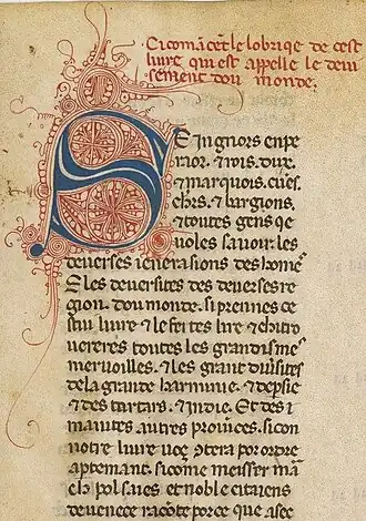 « Seingnors enperaor et rois, dux et marquois, cuens, chevalers et borgiois, et toutes gens qe volés savoir les deverses jenerasions des homes et les deversités des deverses region dou monde... »