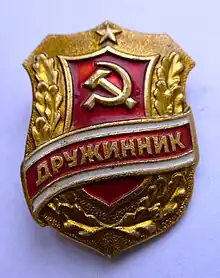 En URSS, les droujini avaient un statut détaché du système administratif ou politique soviétique. Dans leur lutte contre la petite criminalité, la surveillance des frontières ou leurs travaux d'intérêt général, ils recevaient cependant le soutien des organes de l'État, que ce soient les komsomols, le parti ou les syndicats. Des services d'auxiliaires de police existaient dans l'Empire russe et l'URSS d'avant 1941, mais ceux-ci ne trouvent une systématisation et une application à toute l'URSS qu'à partir de 1958 sous le nom de droujina. Après 1991 et la chute du régime communiste, les droujini sont recréées en Russie avec des fonctions similaires mais sans commune mesure avec l'organisation de masse qui s'était mise en place, que ce soit dans son fonctionnement ou dans le nombre de ses adhérents.