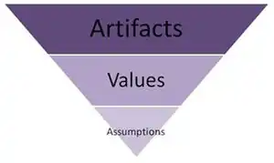 Il identifie trois niveaux distincts dans les cultures organisationnelles : les artefacts et les comportements, les valeurs adoptées ainsi que les hypothèses[4].