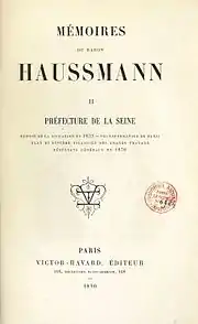 20. Baron Haussmann, Mémoires(trois tomes publiés en 1890 et 1893 ; nouvelle édition établie par Françoise Choay, Seuil, 2000). Voir aussi l'exemplaire de Gallica.