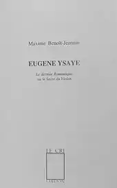 - Maxime-Benoît Jeannin, Eugène Ysaye : Le dernier romantique ou Le sacre du violon, Bruxelles : Le Cri, 1989 (ISBN 2-87106-021-5)