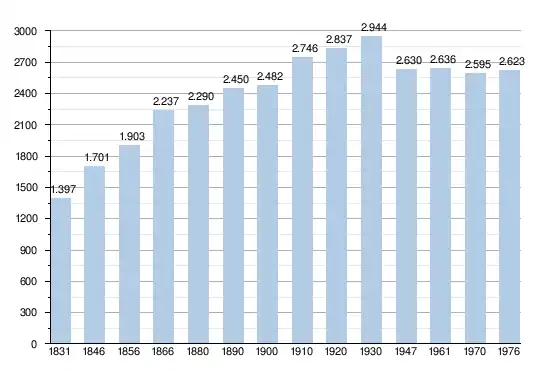 - Sources : INS, Rem. : 1831 jusqu'en 1970 = recensements, 1976 = nombre d'habitants au 31 décembre.[2]
