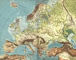 Carte de l'Europe géographique présentant les reliefs.