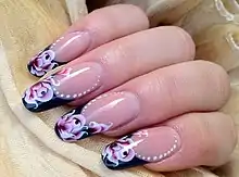 Les faux ongles sont des ongles artificiels en acrylique. Ils sont posés sur les ongles naturels soit dans un but esthétique, soit pour camoufler une imperfection de l'ongle naturel ou pour le rallonger.
